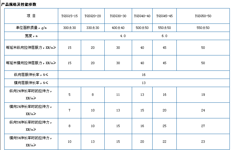 双向拉伸塑料土工格栅规格性能表GB/T17689-1999